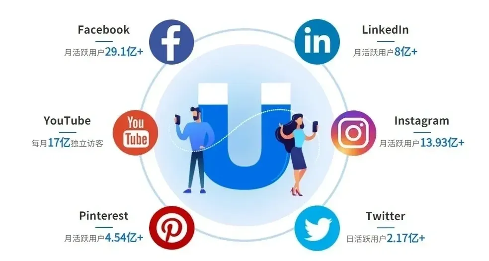 海外广告投放,借助Google、Facebook、Bing、Pinterest等海外主流媒体平台,